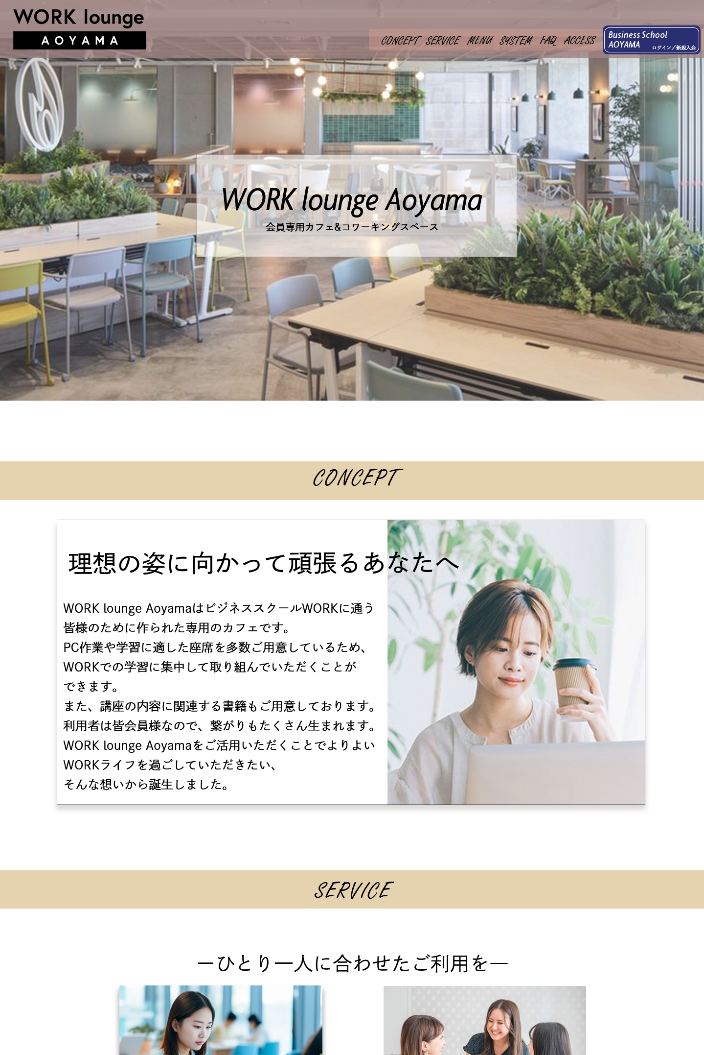女性専用会員性のコワーキングスペースサイトのLPです。