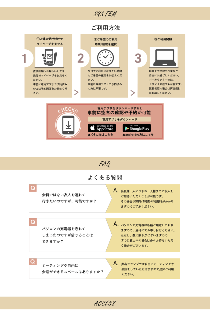 ・カフェスペースもありドリンク片手に仕事可能