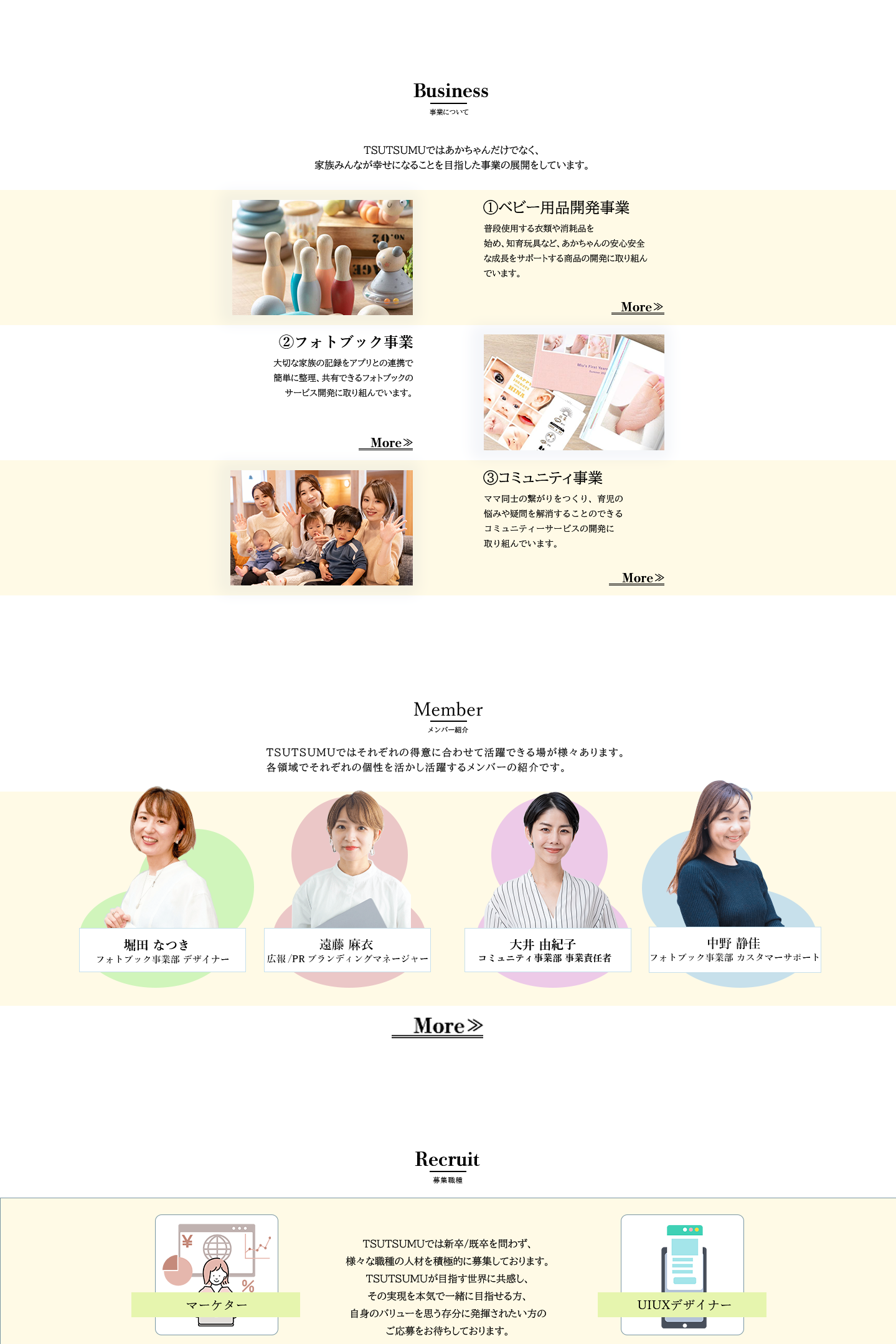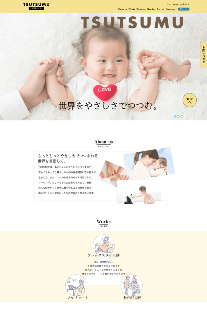 ベビー用品会社『TSUTSUMU』の採用専用サイト